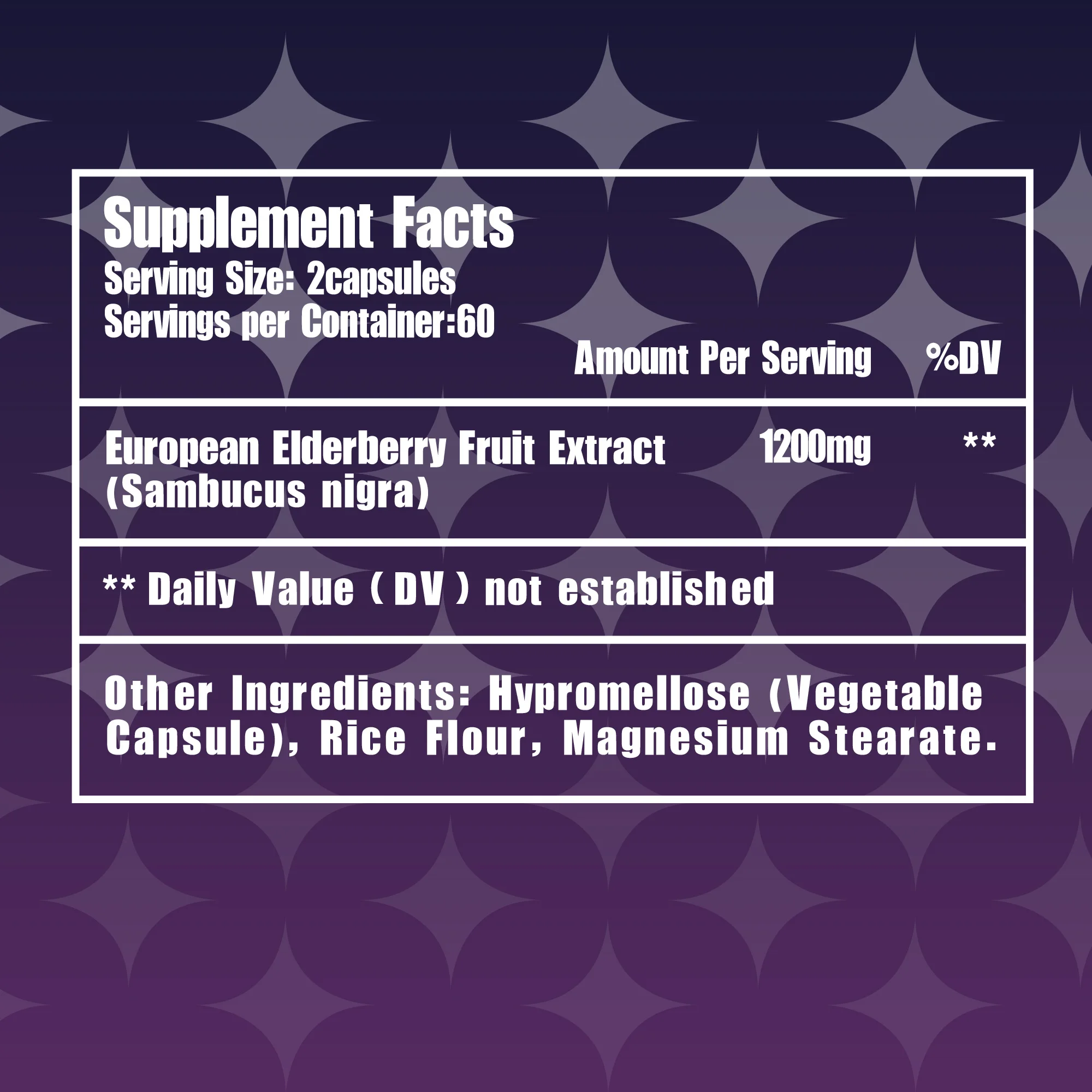 Elderberry Extract – For Supporting Immune System Health, Rich in Antioxidants – 120 Capsules
